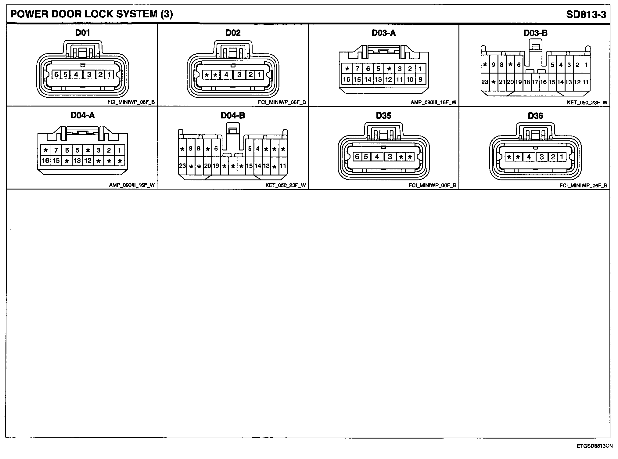Power Door Lock System Connector Pin Outs: