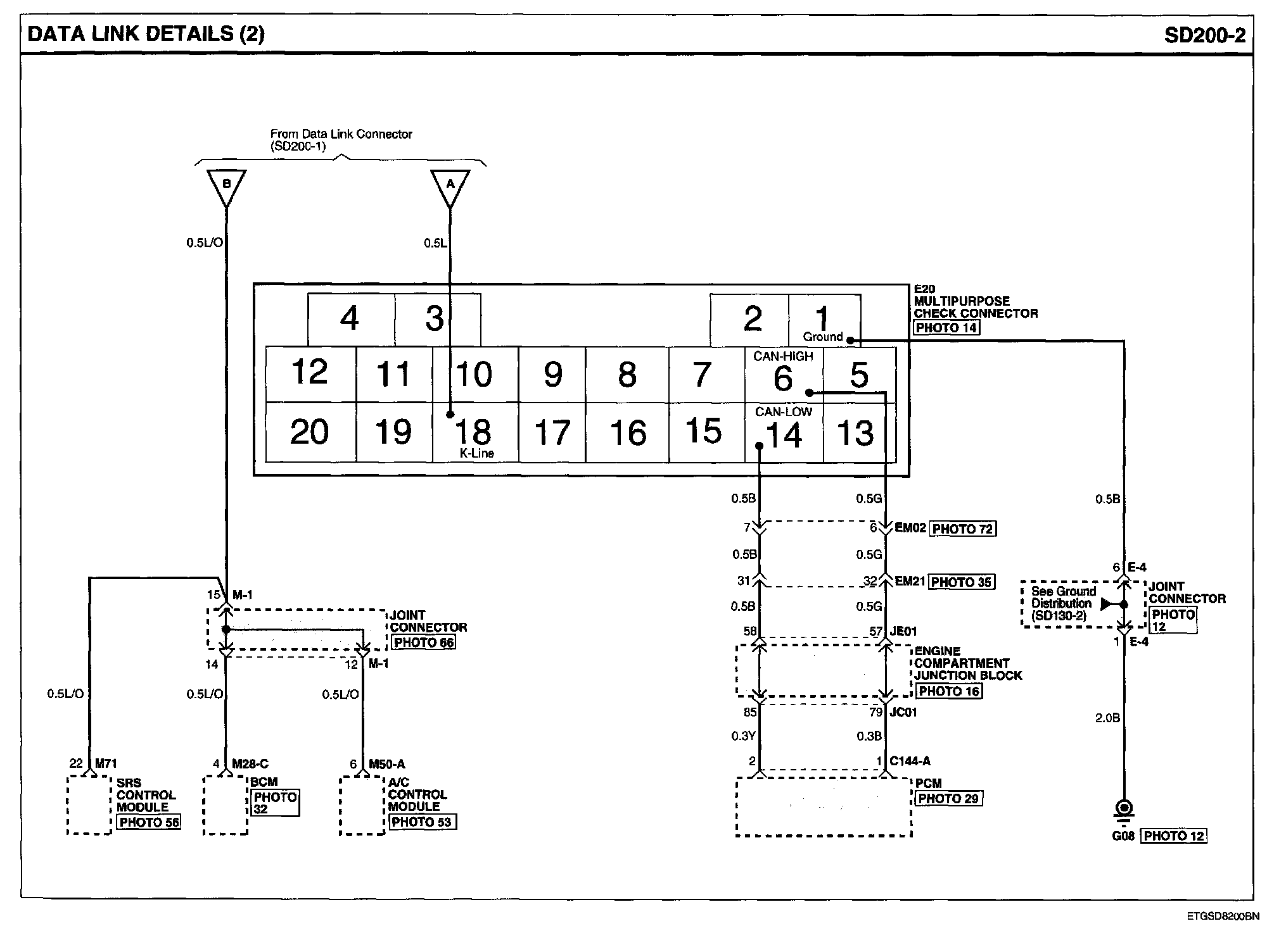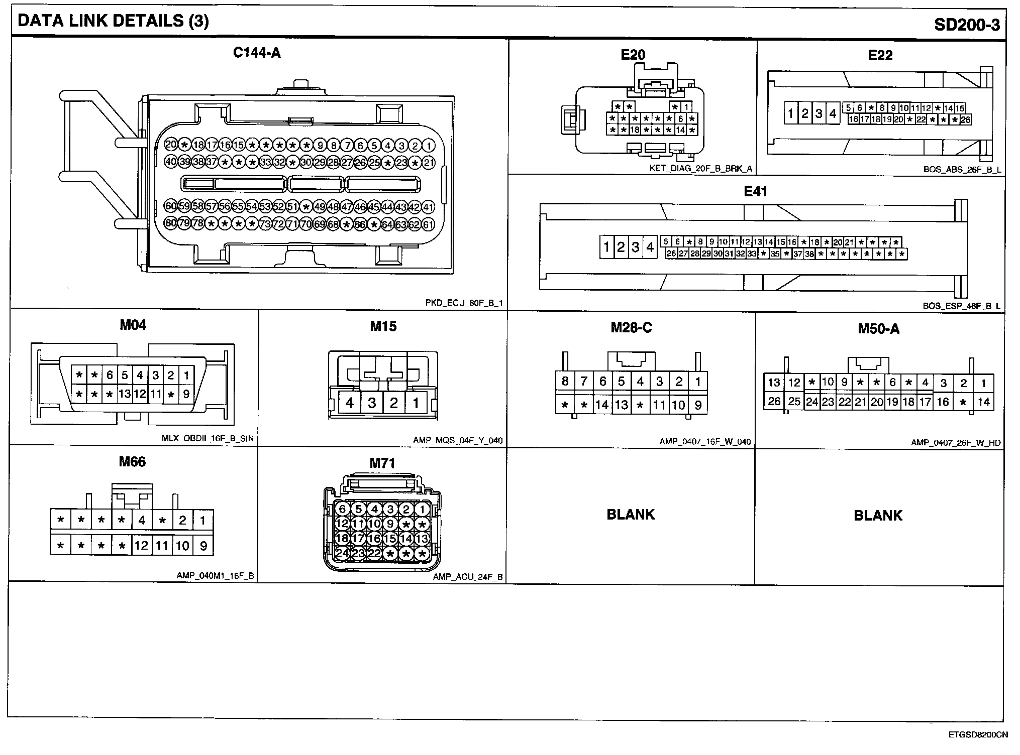 Data Link Details Connector Pin Outs: