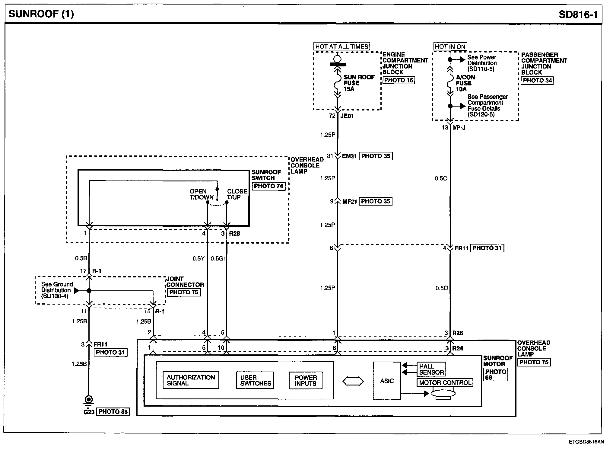 Sunroof Connector Pin Outs: