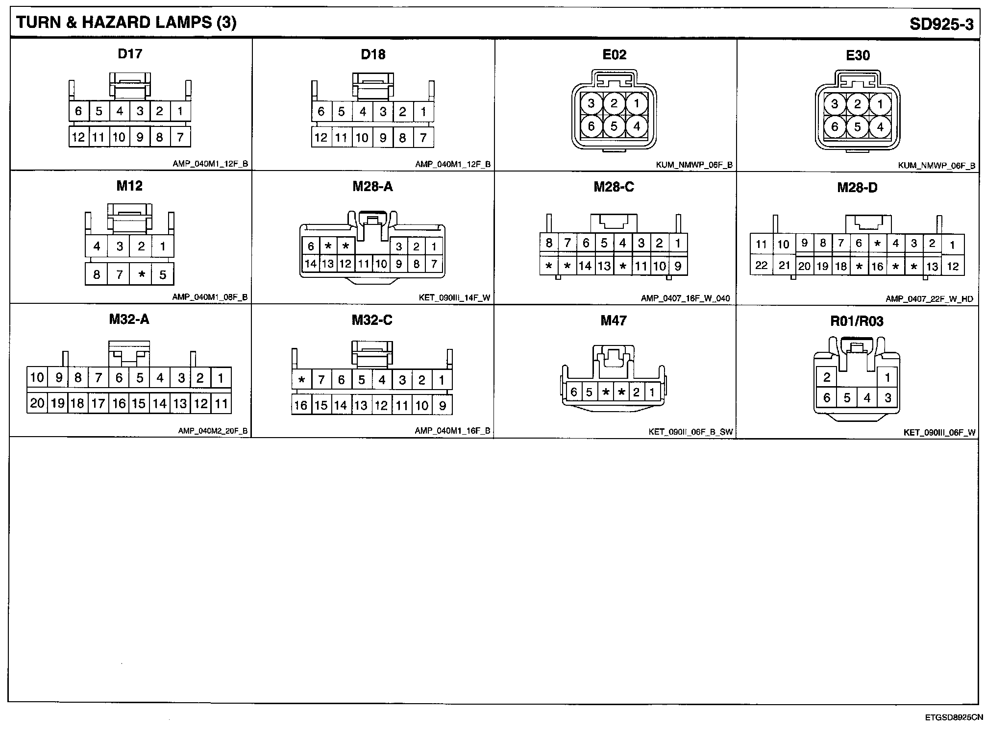 Connector View: The Connector Pin Out Views for connectors shown on these diagrams can be found on the Connector Pin Out images that follow most sets of system diagrams.