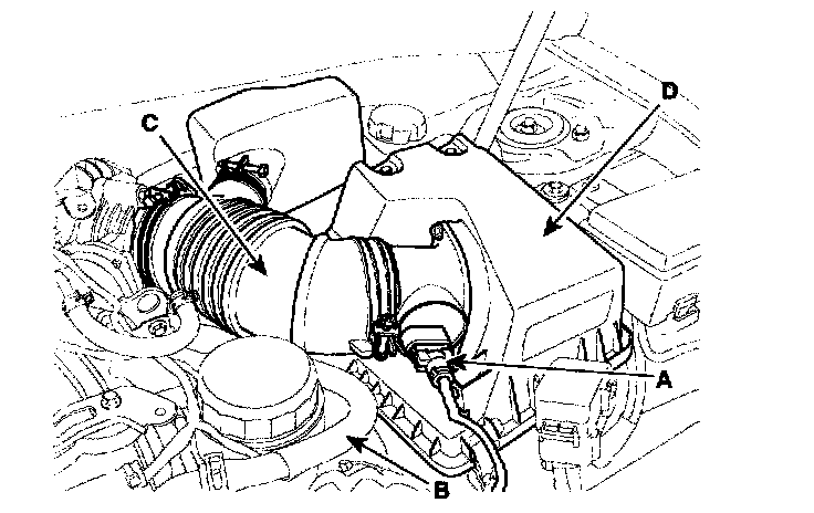 4) Remove the intake air hose(C) and air cleaner upper cover(D).