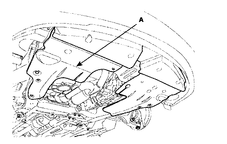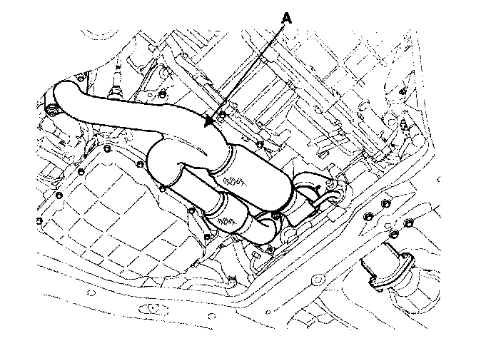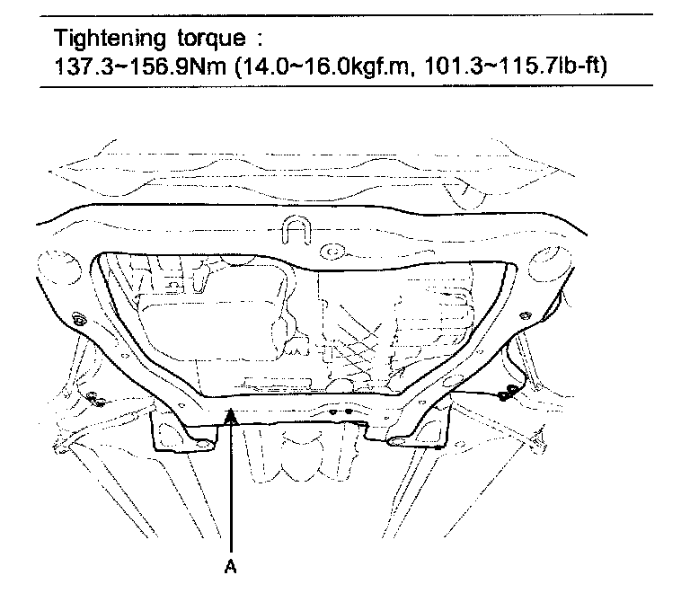 29. Supporting the cross member(A) with a jack, remove the stay with the mounting bolts.