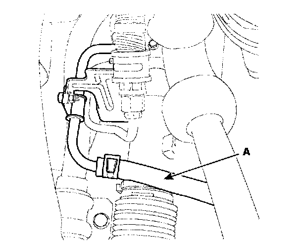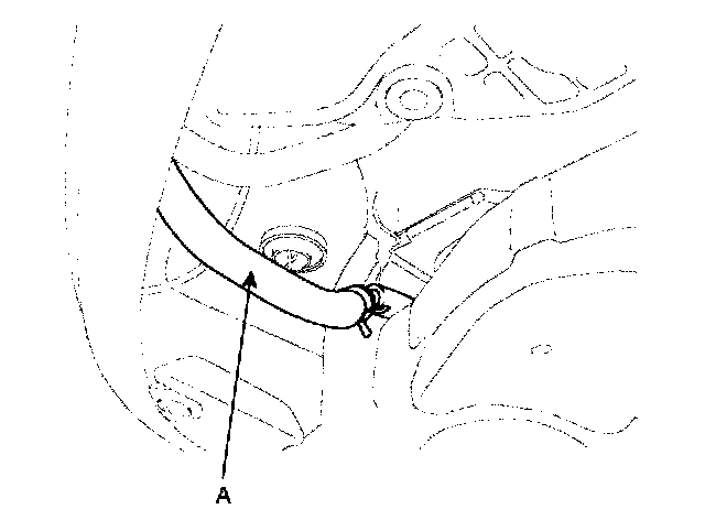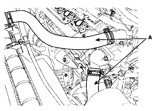 9. Remove the upper radiator hose and lower radiator hose(A).