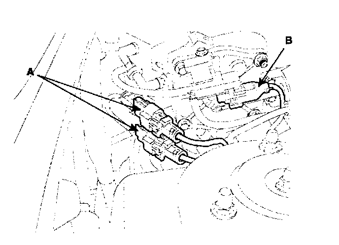 11) Disconnect ETC connector(A) and knock sensor connector(B).