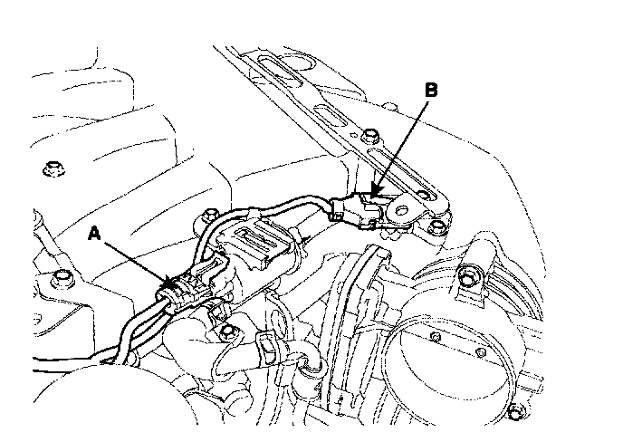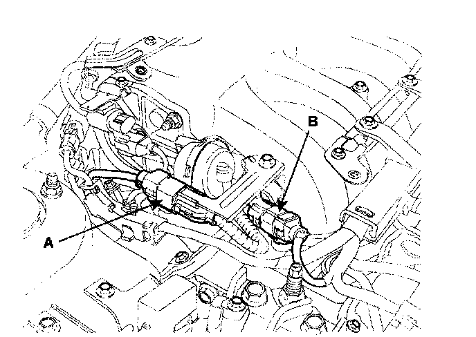9) Disconnect PCSV connector(A) and MAP sensor connector(B).