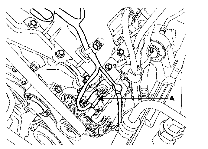 4) Disconnect OCV connector(A) and knock sensor connector(B).