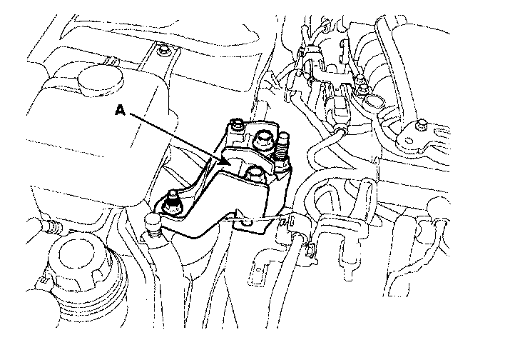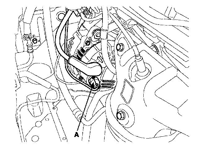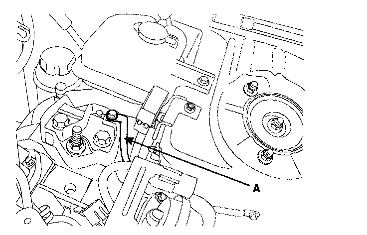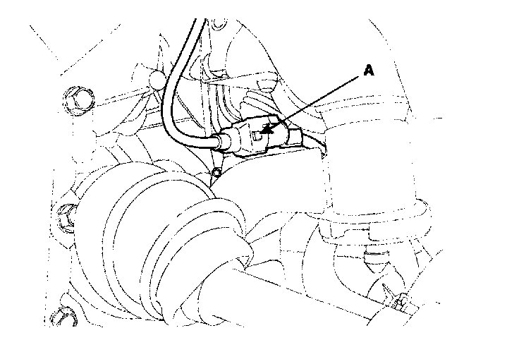 32. Disconnect the ground cable(A) from the engine mounting bracket.