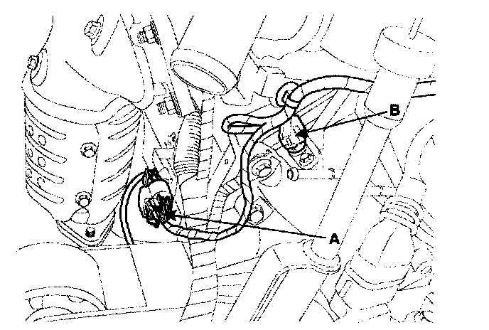 13) Disconnect LH rear oxygen sensor connector(A) and CPS connector(B).