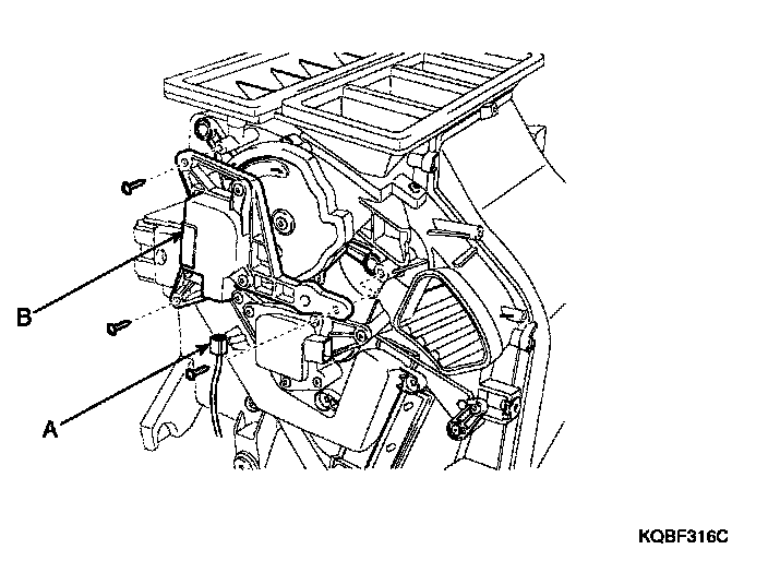 4. Loosen the mounting screws and then remove the mode control actuator (B).