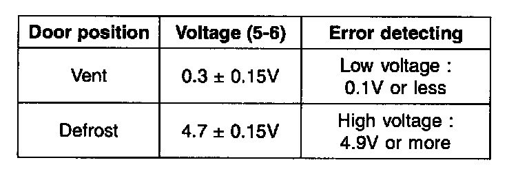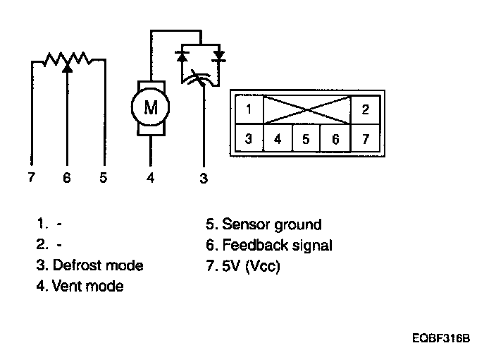 1. Verify that the mode control actuator operates to the defrost position when connecting 12 V to the terminal 3 and grounding terminal. Verify that the mode control actuator operates to the vent position when connecting in the reverse.