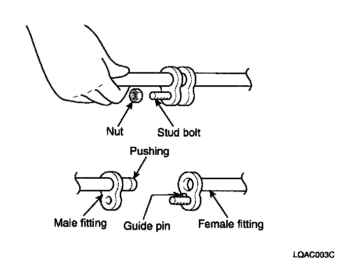 - Complete the connection of all refrigerant tubes and hoses without delay to prevent the A/C system from taking on moisture.