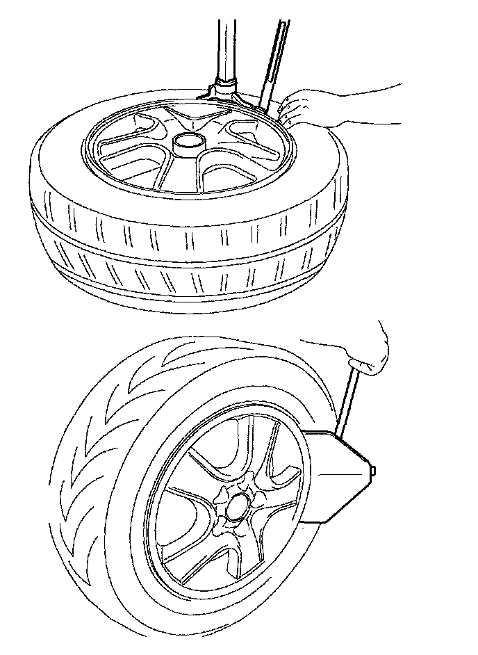 ^ Avoid tire/tool contact with the valve on dismount.
