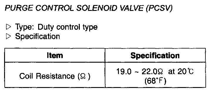 Purge Control Solenoid Valve (PCSV) - Specification:
