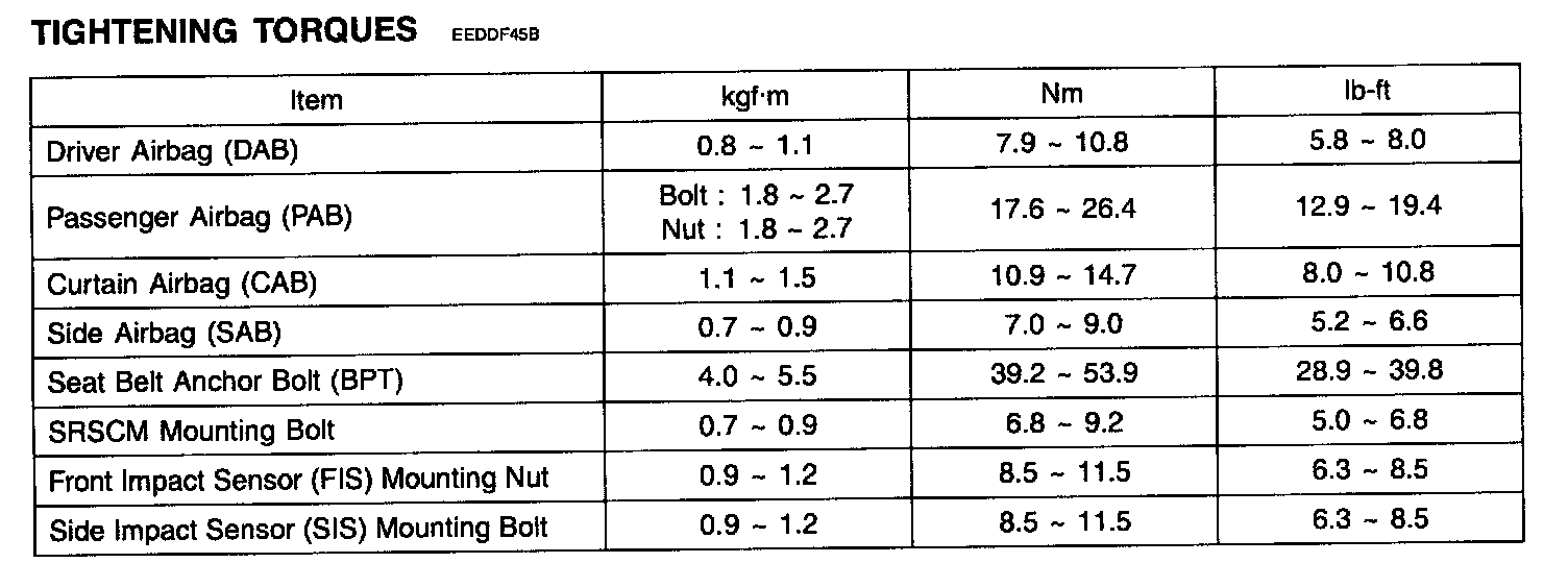 Tightening Torques:
