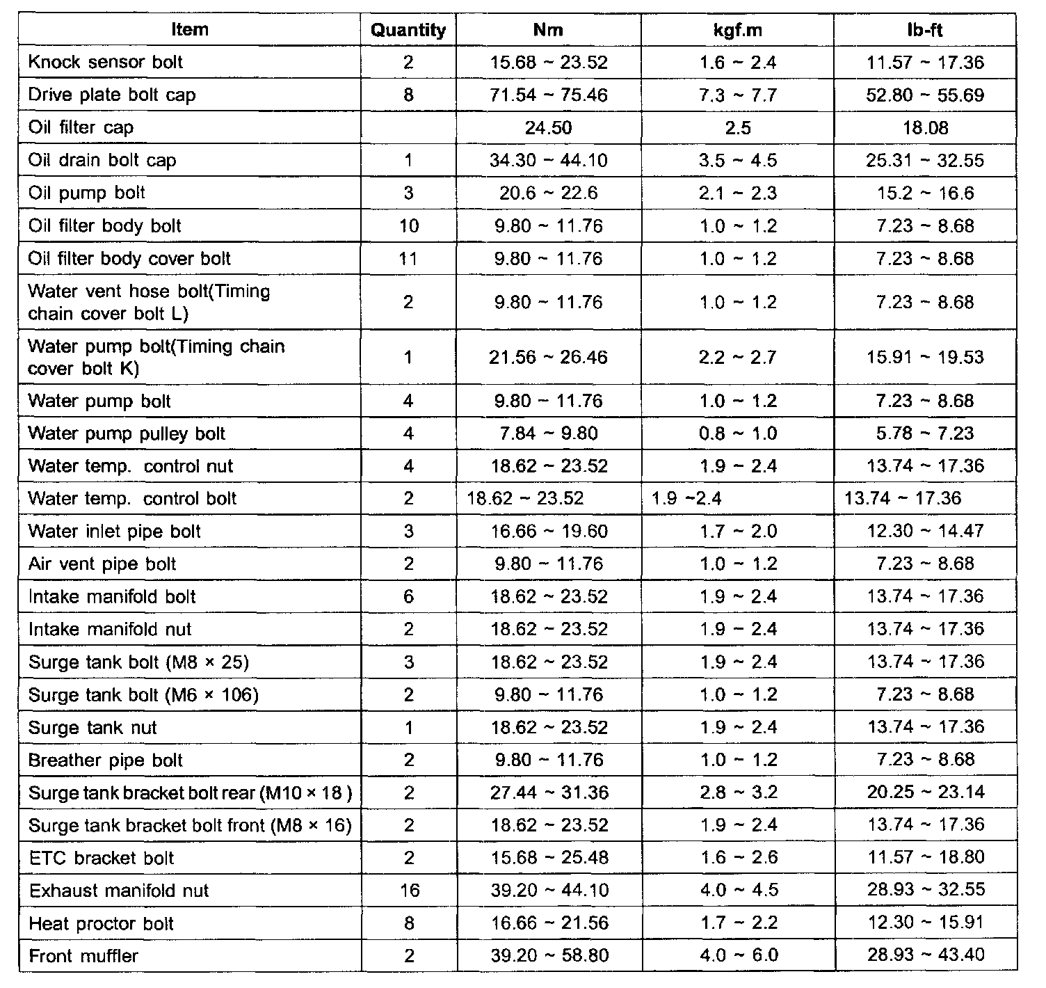 Tightening Torque