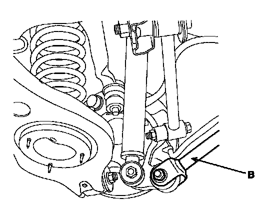 5. Remove the rear shock absorber mounting bolts(A) and the trailing arm(B) from the knuckle.