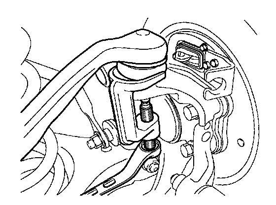 9. Remove the rear upper arm ball joint(A) by using the special tool(09568-4A000).