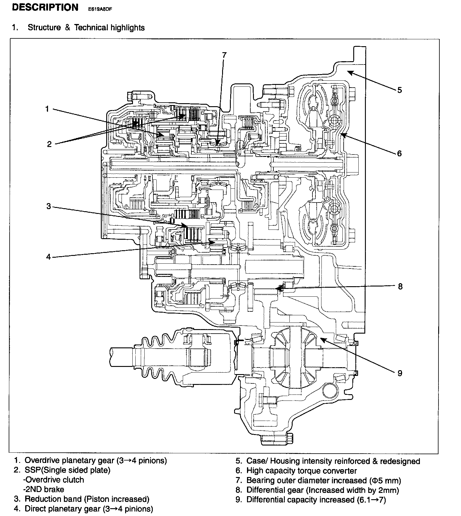- SSP (Single Sided Plate) applied only on overdrive clutch and 2nd brake