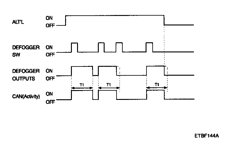 2. Defogger switch Input pushed again or T1 delay has elapsed since defogger has been turned ON
