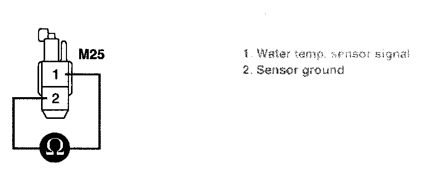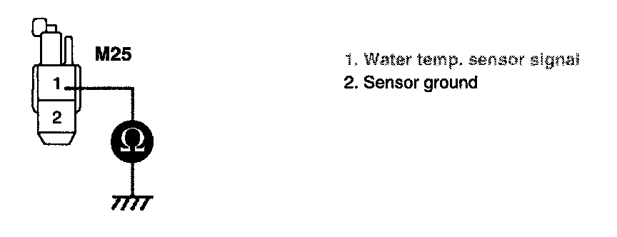 3. Measure resistance between terminal "1" of water temp. sensor and chassis ground.