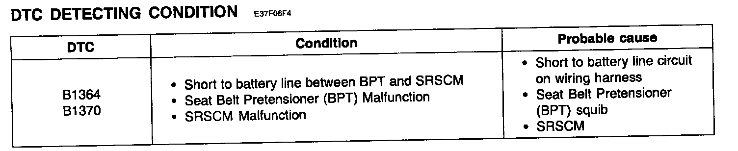 DTC B1364 SEAT BELT PRETENSIONER [FRONT-DRIVER] CIRCUIT SHORT TO BATTERYDTC B1370 SEAT BELT PRETENSIONER [FRONT-PASSENGER] CIRCUIT SHORT TO BATTERY