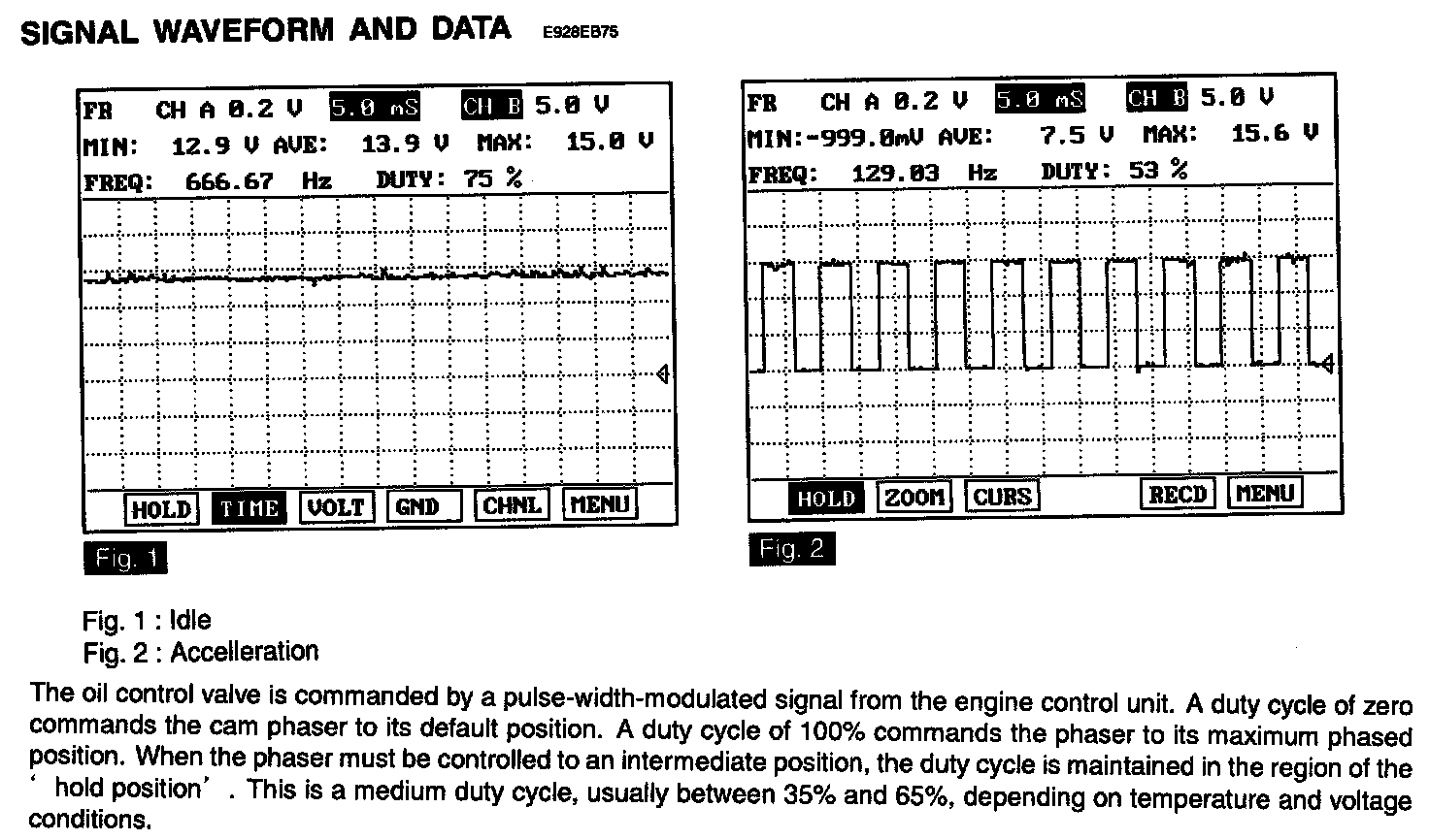 3. Activate "OCV" by pressing "STRT(F1)" key (should hear a faint click from Oil Control solenoid Valve)
