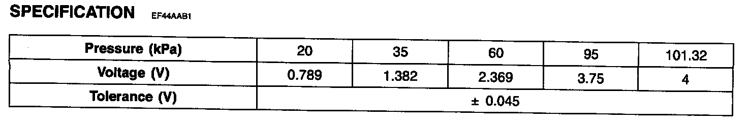 Checking output signals of MAPS every 5 sec. under detecting condition, if an output signal is below 0.25 V for more than 2.5 sec., PCM sets P0107. MIL (Malfunction Indication Lamp) turns on when the malfunction lasts till continuous 2 driving cycle.