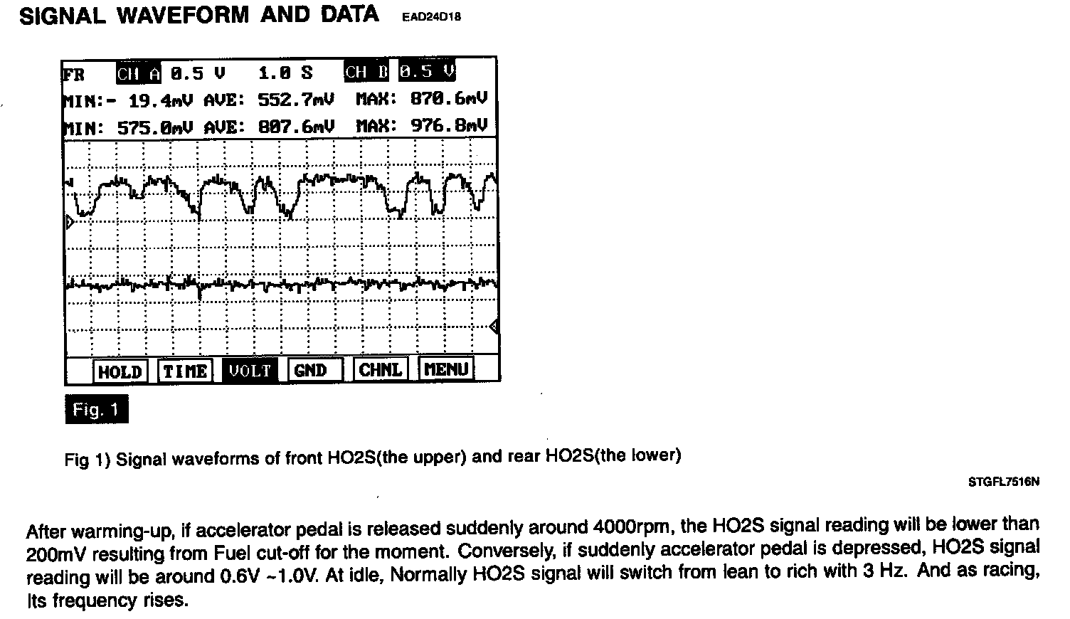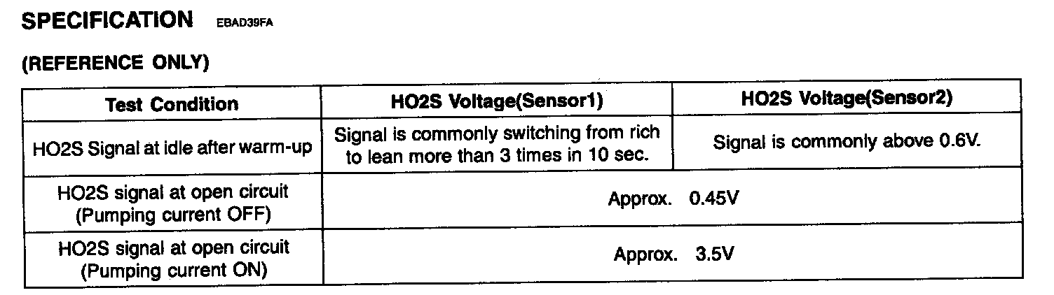 In order to control emissions of the CO, HC and NOx components of the exhaust gas, heated oxygen sensor (HO2S), mounted on the front side and rear side of catalytic converter, detects the oxygen content in the exhaust gas. The front HO2S signal is used to control air/fuel ratio (closed loop fuel control) and the rear HO2S signal is used to monitor front HO2S and catalyst for proper operation. The HO2S requires a minimum temperature to operate properly and provide a closed loop fuel control system. The HO2S contains the heater element to reduce its warming-up time and ensure its performance during all driving conditions. The oxygen sensor generates a voltage that indicates the difference between the oxygen content of the exhaust stream and the oxygen content of ambient air. When the exhaust stream is "rich," there is more oxygen in the ambient air than in the exhaust stream, so the voltage will be higher.