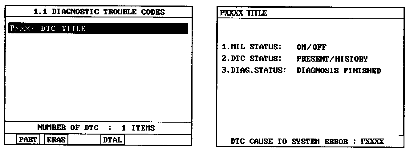 3. Select "Diagnostic Trouble Codes (DTCs)" mode, and then Press F4(DTAL)to check DTC's information from the DTCs menu
