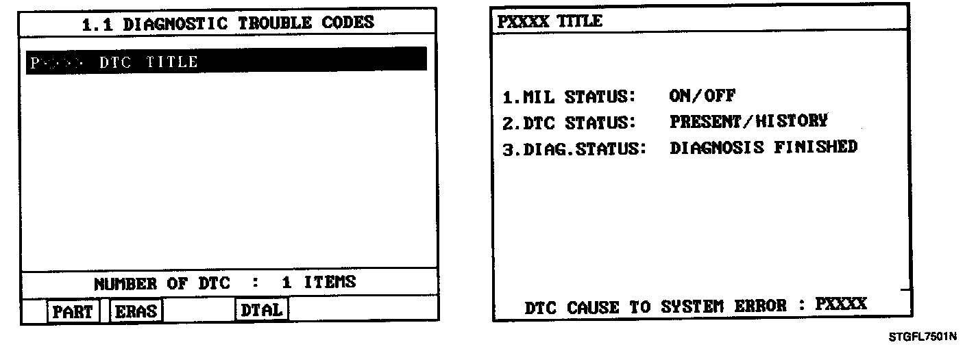 3. Select "Diagnostic Trouble Codes (DTCs)" mode, and then Press F4(DTAL)to check DTC's information from the DTCs menu