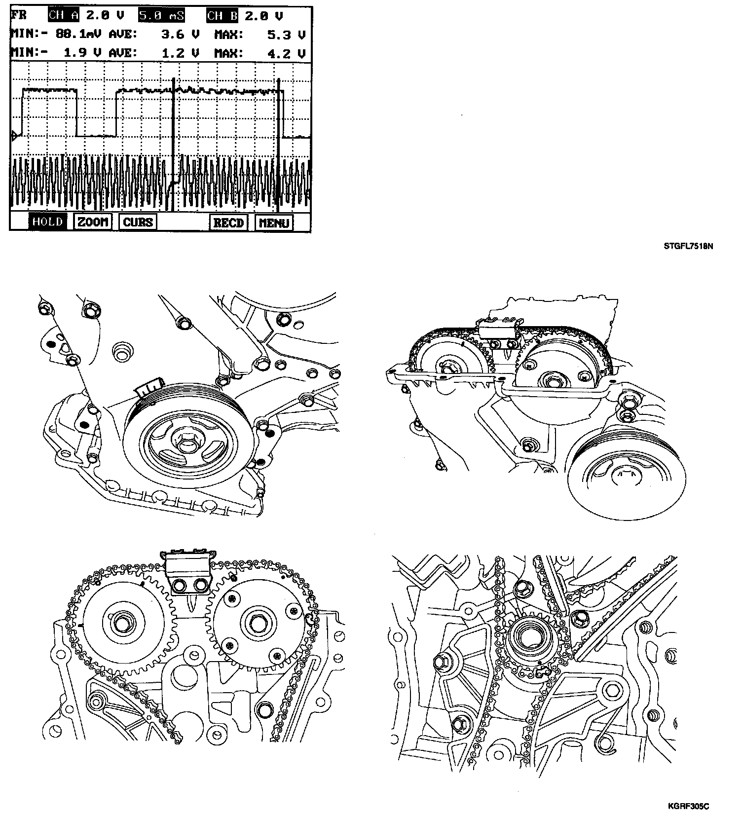 2. Monitor these signal waveforms from CAM and Crank shaft position Sensor are correctly aligned.