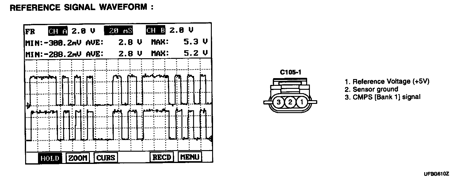 2. ENG "ON" and Measure signal waveform at terminal 3 of CMPS.