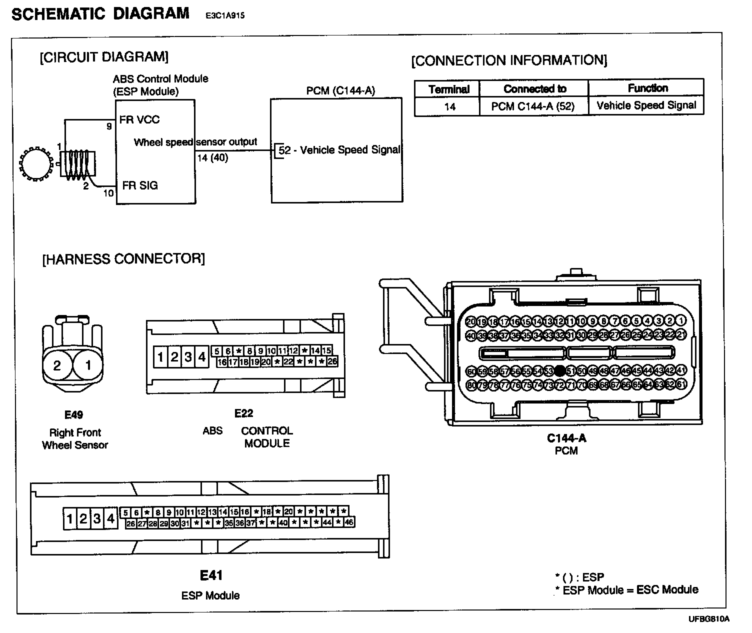 NOTE: This procedure is applied to vehicle with ABS (or ESC) In case of no ABS (or ESC), refer to "C1203 Wheel speed sensor front-RH open/short".