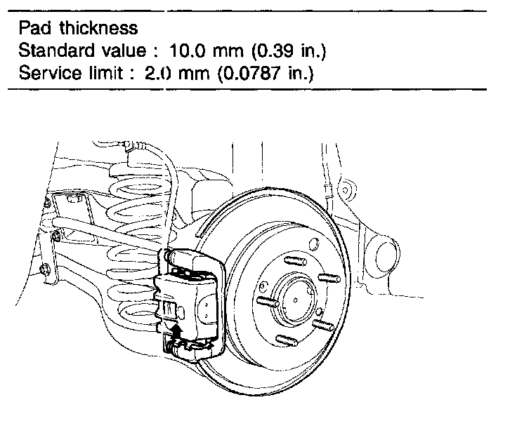 ^ If the pad thickness is out of specification, left and right pads must be replaced as a complete set.