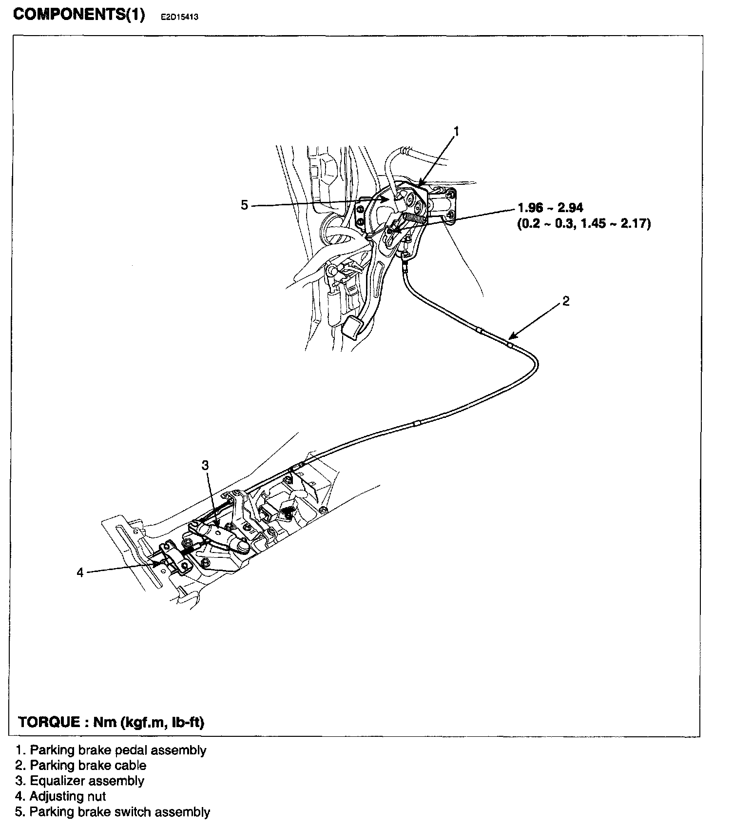 2. Remove the parking brake mounting bolt(A) and the wire(B).
