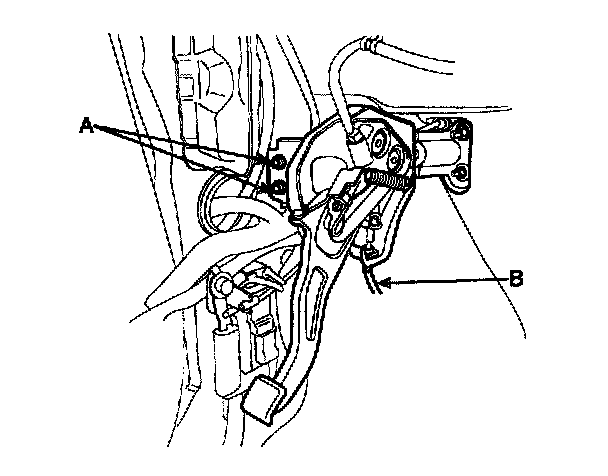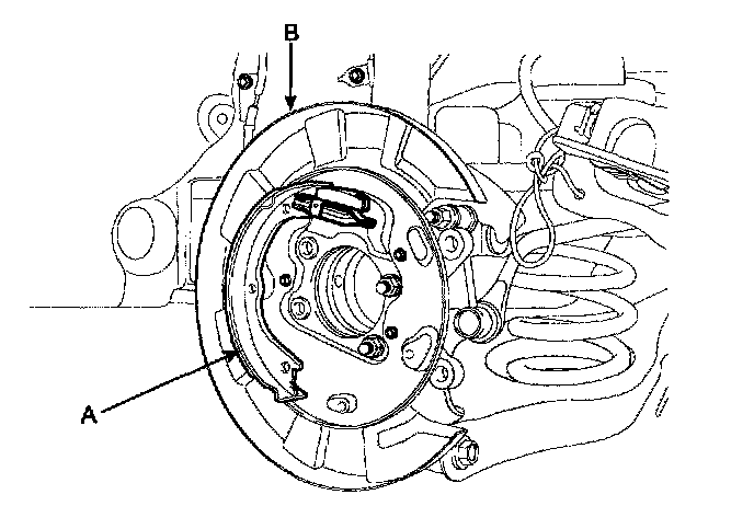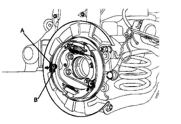 10. Remove the adjuster assembly(A) and the lower return spring(B).
