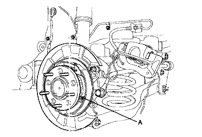 4. Remove the parking brake wire by removing the adjusting nut(A).