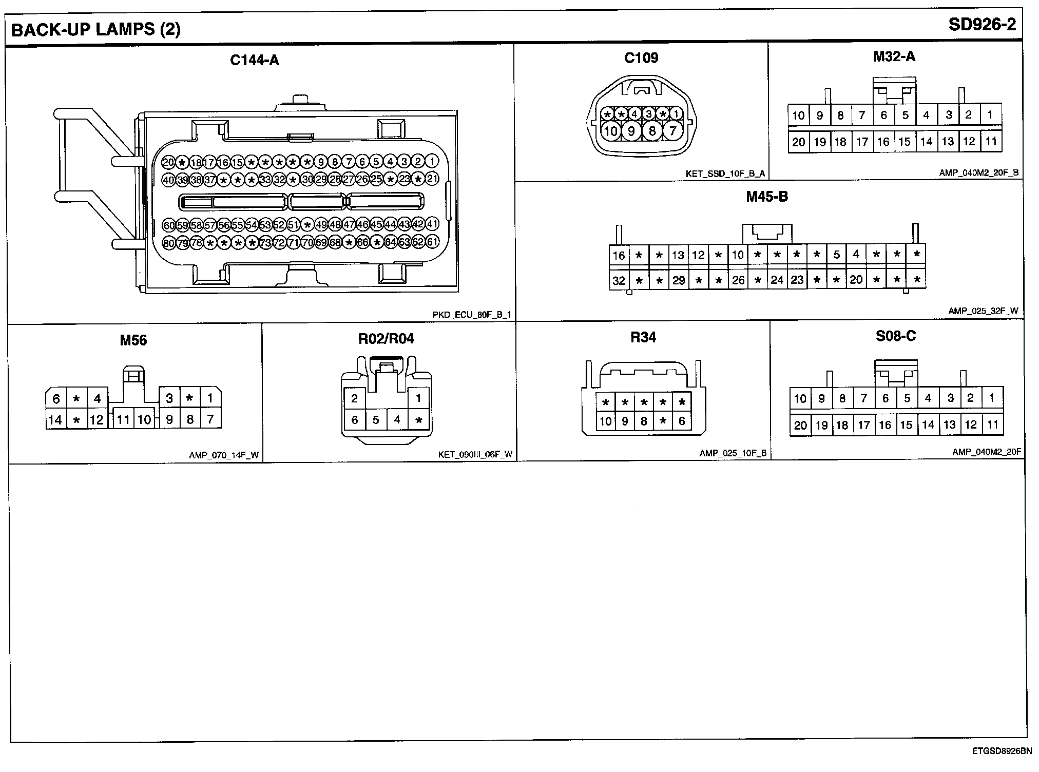 Connector View: The Connector Pin Out Views for connectors shown on these diagrams can be found on the Connector Pin Out images that follow most sets of system diagrams.