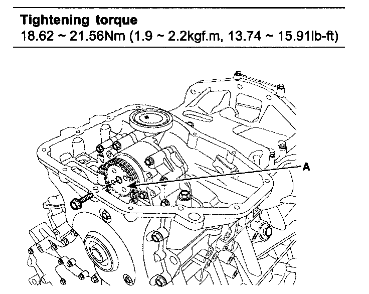 2. Install oil pump sprocket(A) and oil pump chain on the oil pump.