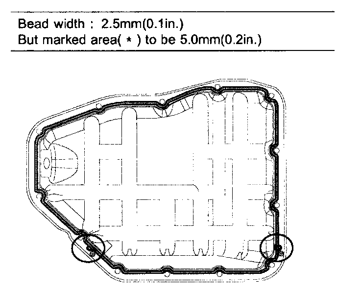 b. Before assembling the oil pan, the liquid sealant TB1217H should be applied on upper oil pan.