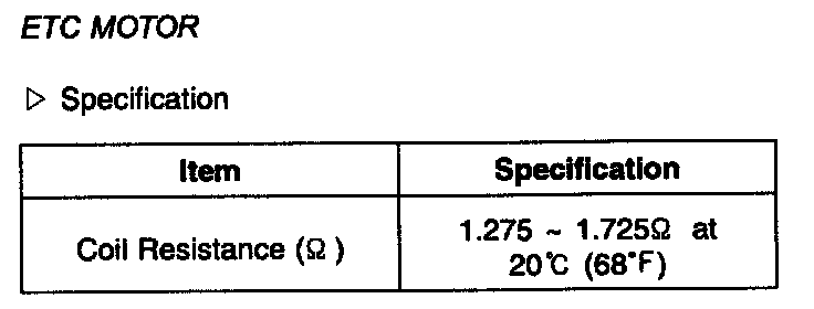 Electronic Throttle Actuator: Specifications