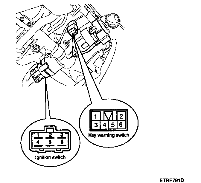 1. Disconnect the ignition switch connector and key warning switch connector from under the steering column.