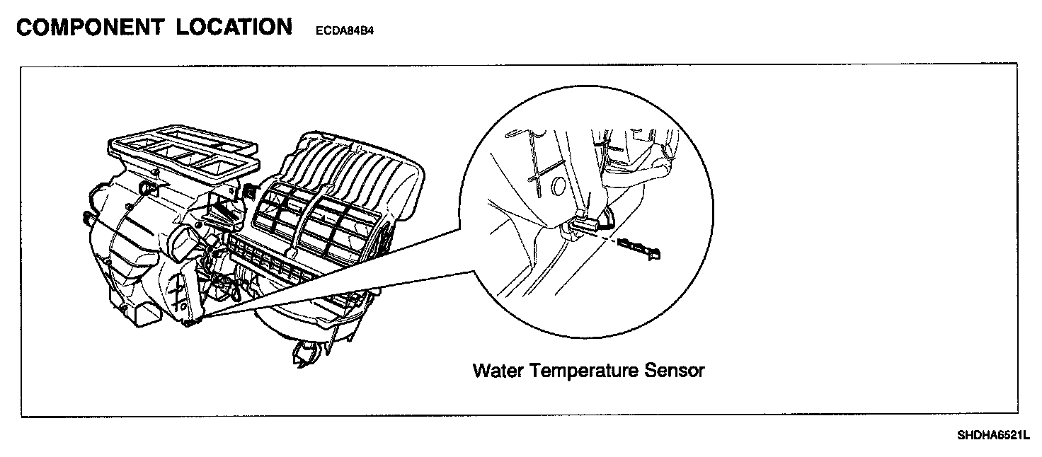 A water temp. sensor located at heater unit, detects coolant temperature. Its signal is used for cold engine lockout control. When the driver operates the heater before the engine is warmed up, the signal from sensor causes the heater control unit to reduce blower motor speed until coolant temperature reaches the threshold value.
