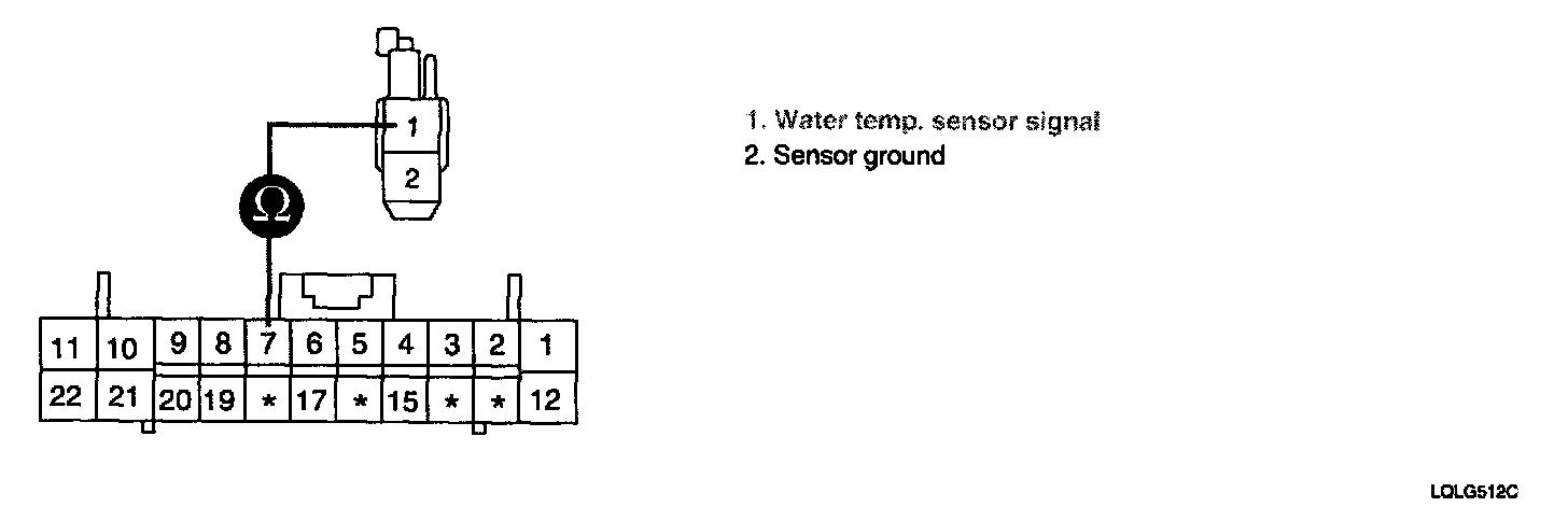 3. Measure resistance between terminal "1" and "2" of water temp. sensor.