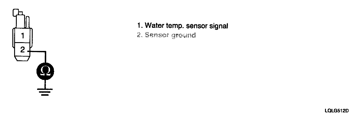 3. Measure resistance between terminal "2" of water temp. sensor and chassis ground.