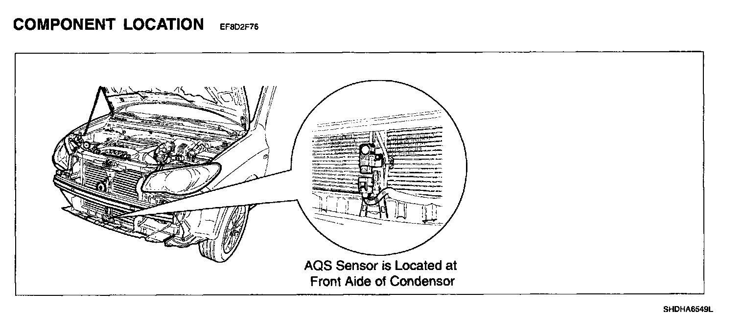 AQS (Air Quality System) keeps air inside in the most suitable state for driver. In polluted area AQS detects hazardous gas and intercepts inflow automatically, Inversely, In fresh area it allows the inflow of air to prevent the shortage of air and the accumulation of carbon dioxide. AQS sensor is located at front side of condenser and once hazardous gas is detected, it delivers the voltage signal to A/C controller for closing intake door.