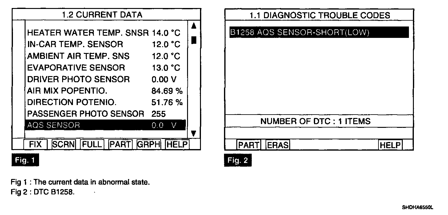 4. Are the DTC B1257 present and is parameter of "AQS SENSOR" fixed?