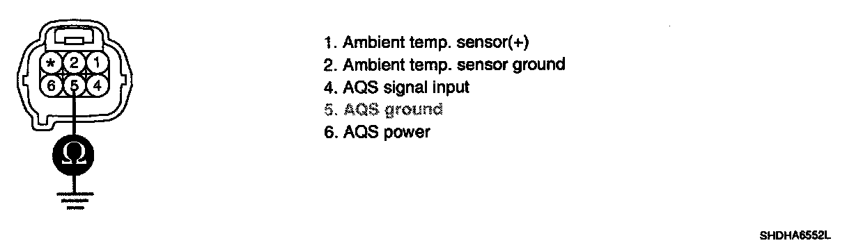 3. Measure resistance between terminal "5" of AQS sensor and chassis ground.