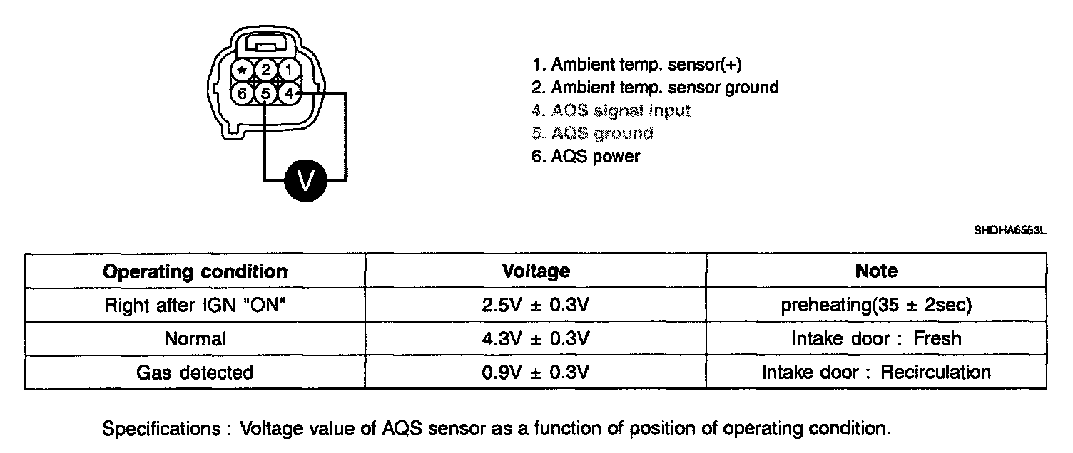 3. Measure voltage between terminal "4" and "5" of AQS sensor.