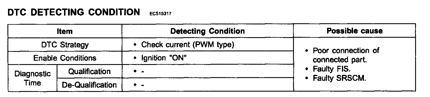 - Displaying nothing (no DTC) or DTC with label "H" (historical) shows that Fault is intermittent caused by poor contact in the part's and/or SRSCM connector or was repaired and SRSCM memory was not cleared.